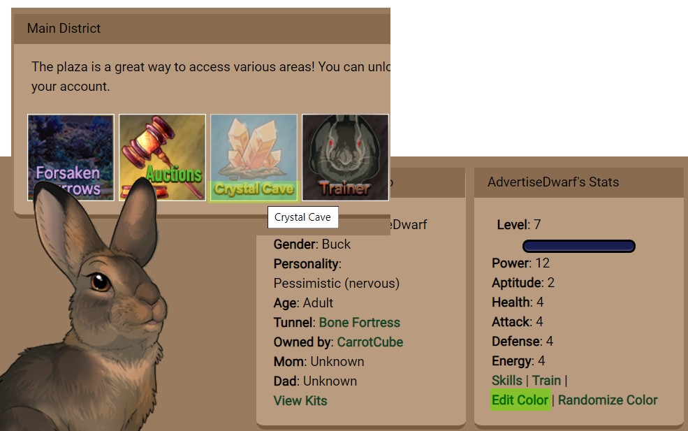 General Guide | Level Guide | Challenger Guide | Foraging Guide | Predator Guide | Rabbit Selling Guide | Kindling Guide | Genetics Guide | Character Contest Guide | Name Generator | Seeker Guide | Snowflake Guide | Shrooms Guide | Category Guide | HTML Guide | Crystal Cave Guide | Help Forum