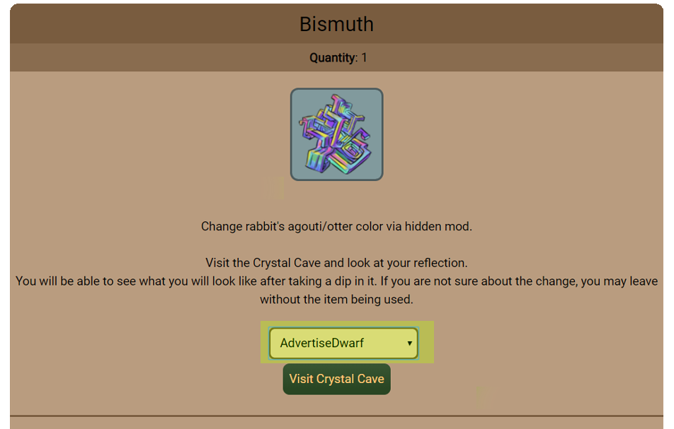 If you use a Rabbit Image Changing item, you have the option to choose a rabbit to visualize in the crystal cave.